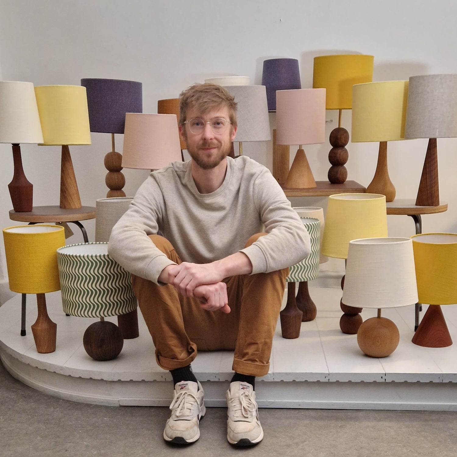 Retrograde Lamps drives af Greg Stone ud af København. Jeg håndbygger alle lamper og lampeskærme på mit værksted på Nørrebro. Jeg vender træet på min drejebænk og håndlaver alle lampeskærme i mit tekstilstudie.