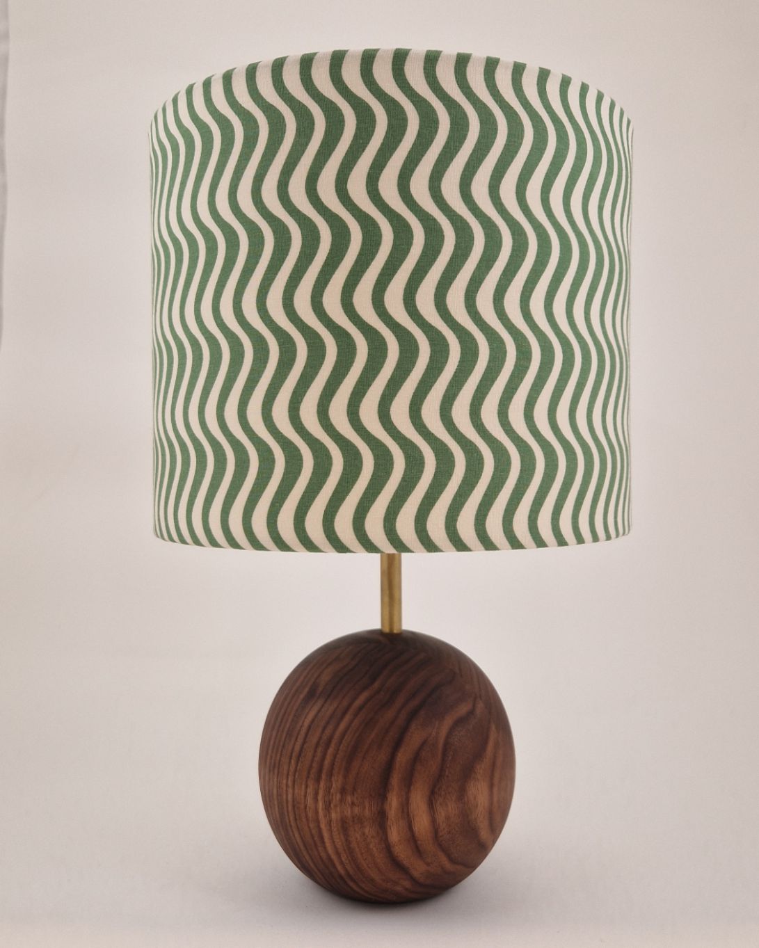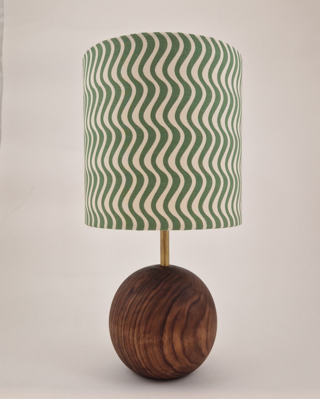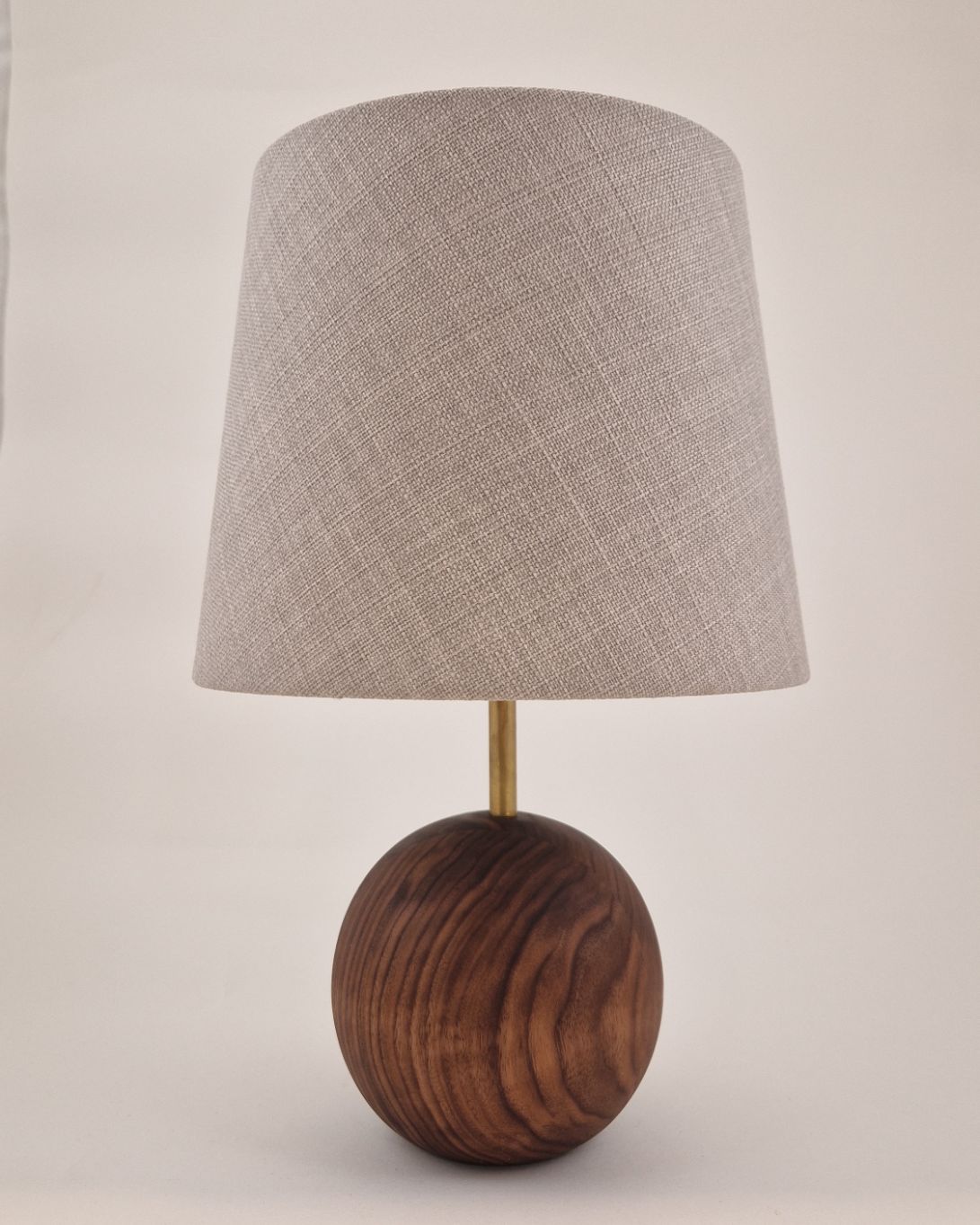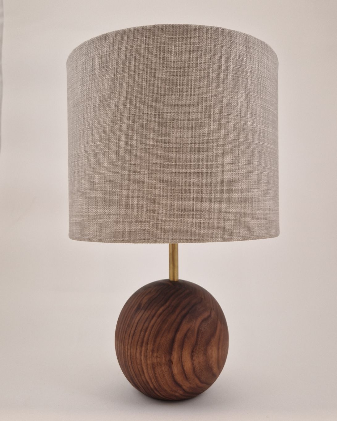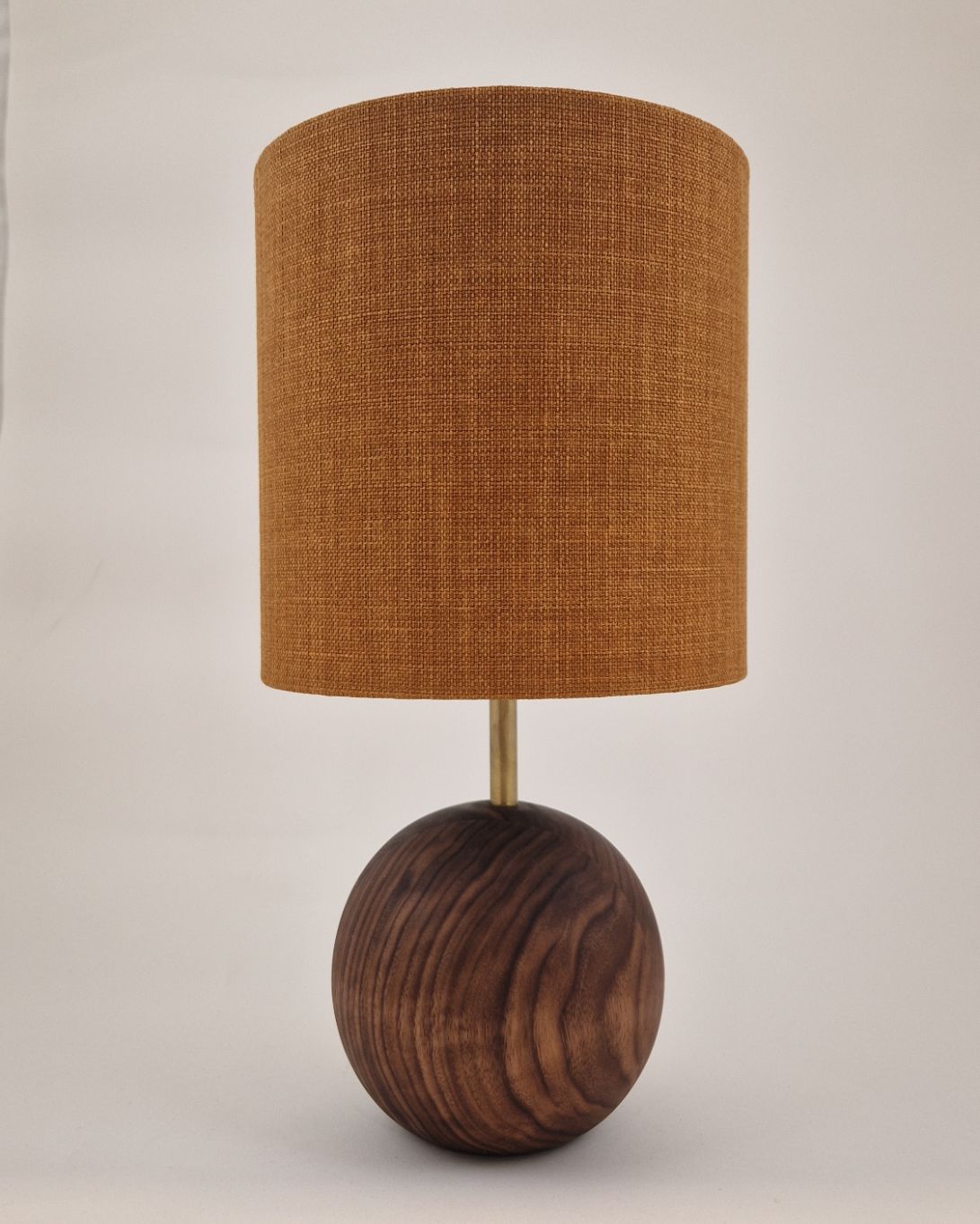 Hånddrejet lampefod med håndlavet lampeskærm. Lampe kommer med 2m sort strømkabel.